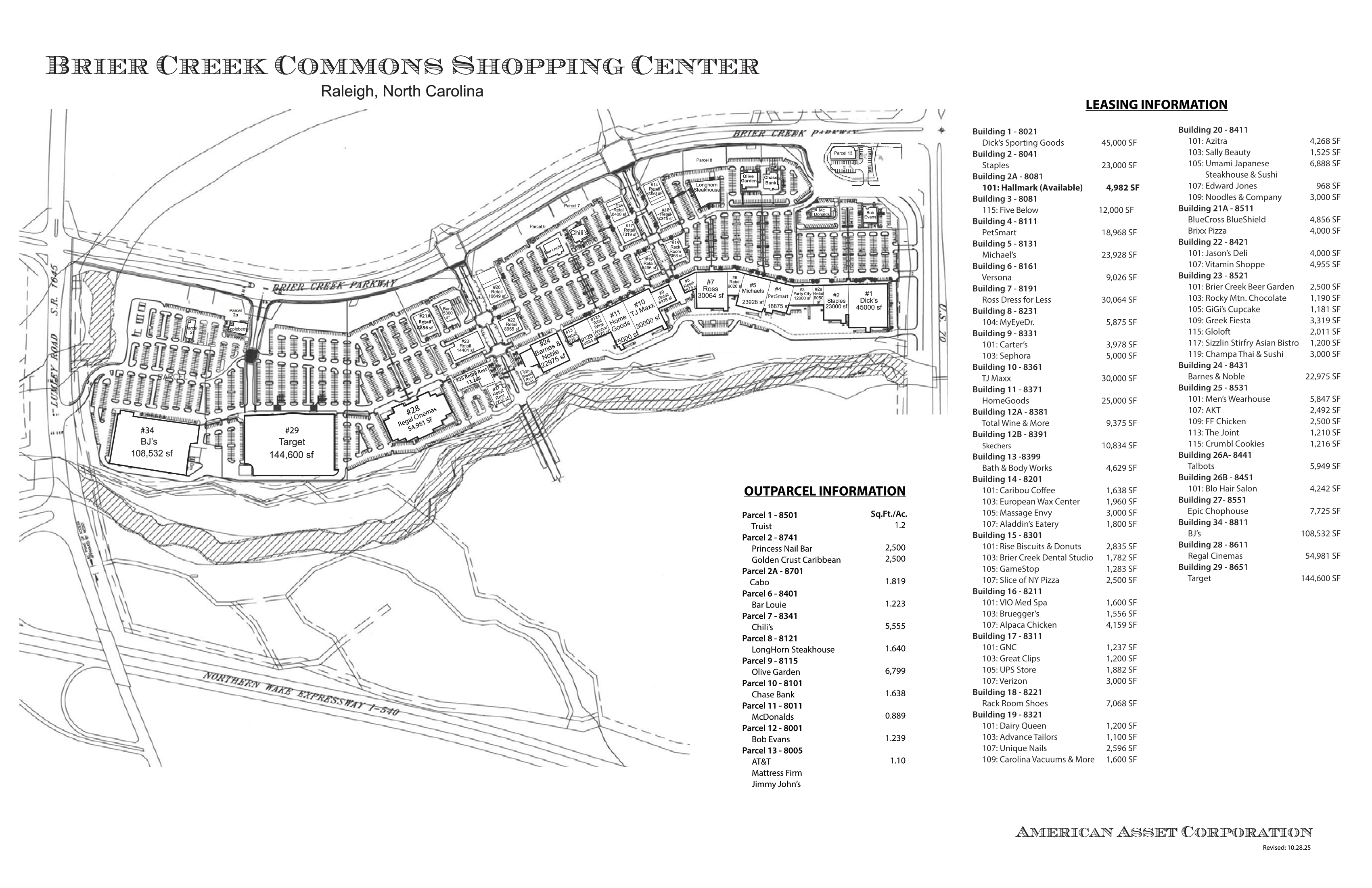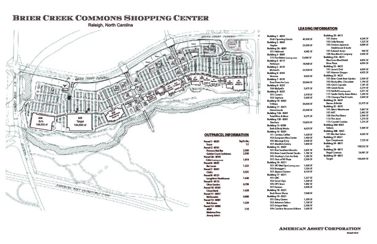Brier Creek Commons is a 771,442 square foot open-air lifestyle center, combining sought after national retailers with unique specialty shops, entertainment and restaurants. Located in one of Raleigh’s most affluent and rapidly growing submarkets, this center includes major tenants such as BJ’s, Dick’s Sporting Goods, HomeGoods, Michael’s, ROSS Dress For Less, TJ Maxx and Target to name a few.