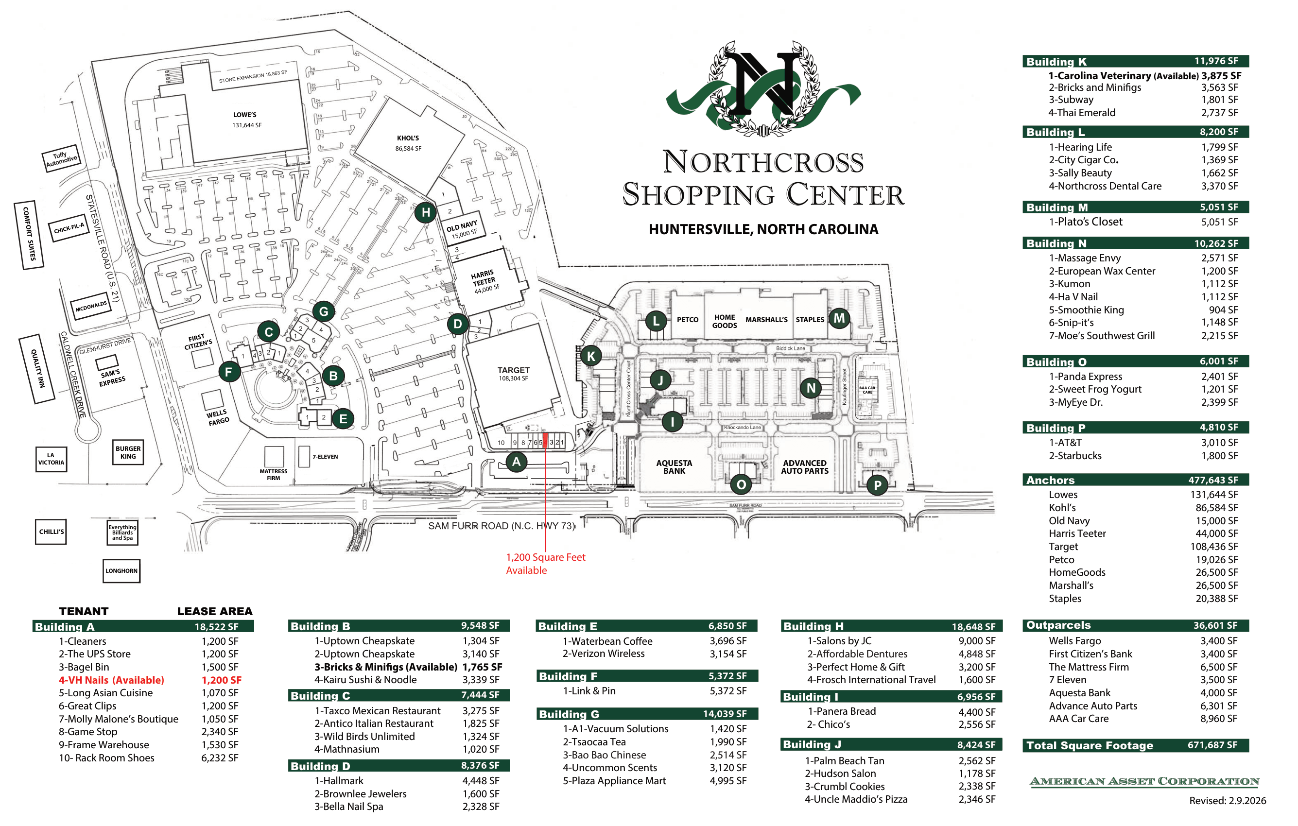 Northcross is a 667,687 square foot regional open air shopping center, featuring a mix of national and local retailers and restaurants. The Center is located in one of the fastest growing communities in the Charlotte market, at Interstate 77 & Sam Furr Road at Lake Norman. Northcross Shopping Center includes major tenants such as Harris Teeter, Kohl’s, Lowe’s, Target, Marshall’s, HomeGoods, Petco and Staples.